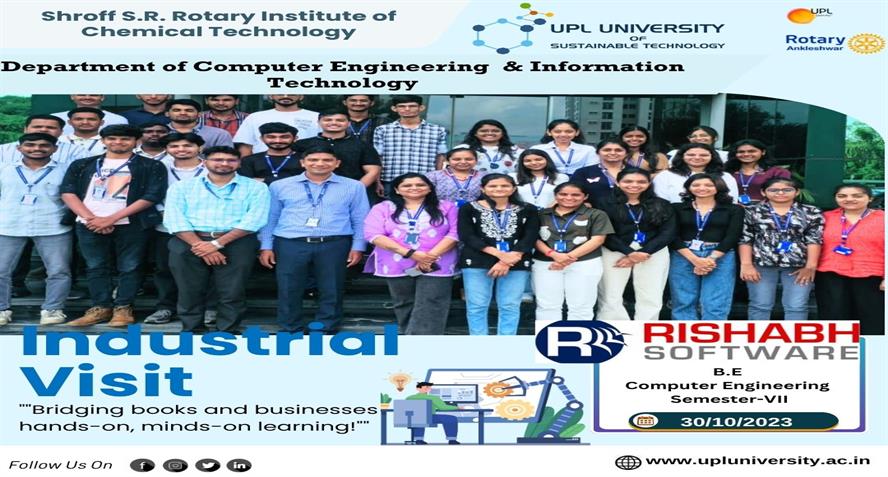 An Industrial Visit was organized for B.E. Computer Engineering Semester 7 students at Rishabh Software Pvt. Ltd., Vadodara on 28.10.25. Students explored the company’s modern and well-equipped campus...