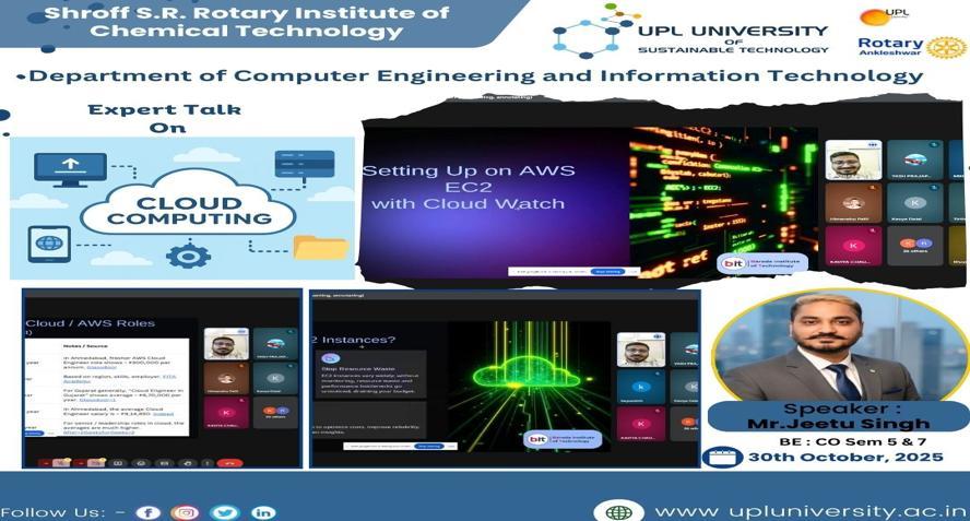 The Computer Engineering and Information Technology Department of UPL University of Sustainable Technology organized an expert lecture on Cloud Computing for BE 5th and 7th semester Computer Engineeri...