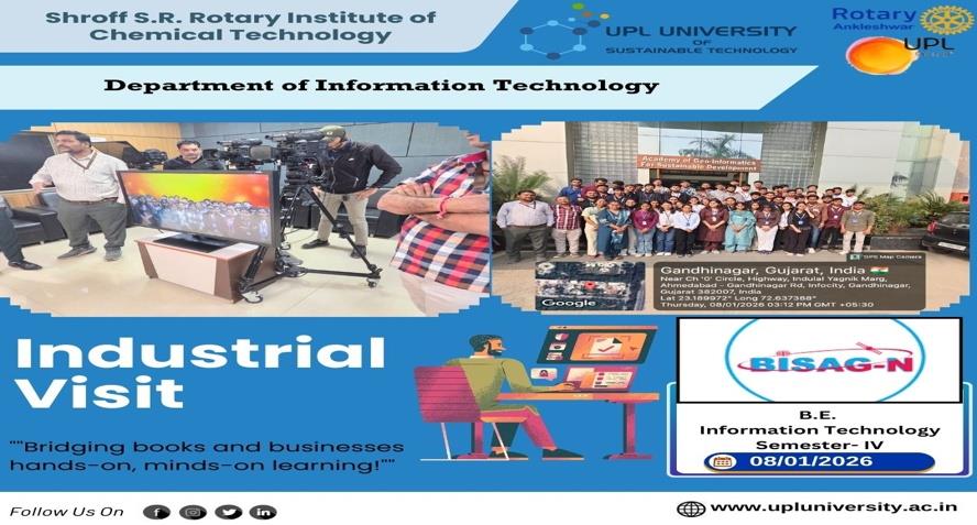 An industrial visit was conducted on 8 January 2026 at BISAG (Bhaskaracharya Institute for Space Applications and Geo-Informatics), Gandhinagar, Gujarat for Information Technology students. A total of...