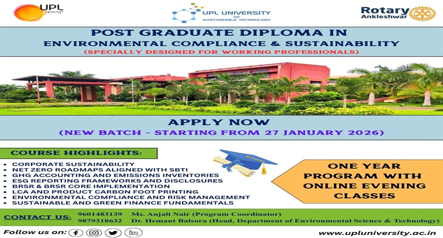 New batch starting from Jan 27,2026. For more details, please visit UPL University of Sustainable Technology, Ankleshwar, for admission contact, https://admission.upluniversity.ac.in/ *Or, directly co...