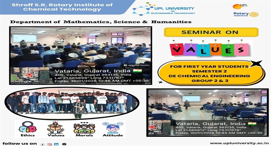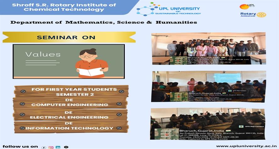 The Department of Mathematics, Science & Humanities successfully conducted a value seminar titled “Values” on 30th January 2026 for students of DE Chemical Engineering (Group 2 & 3) from 10:30 am to 1...