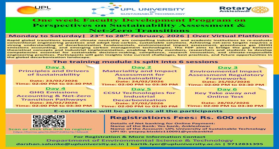 PL University of Sustainable Technology organizes a one week Faculty Development Program on Perspectives on Sustainability Assessment & Net-Zero Transitions....