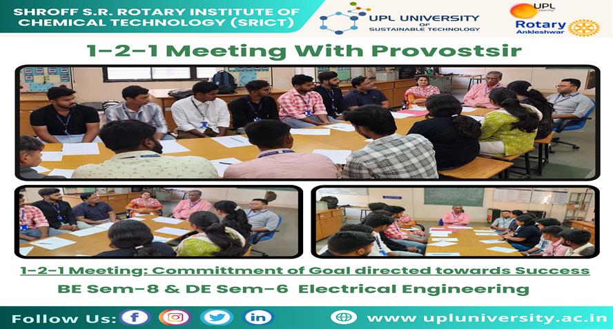 A 1-2-1 meeting of students of BE Sem-8 and DE Sem-6 of electrical engineering was arranged with Dr. Shrikant J. Waghsir, Provost of UPL University, on 16h February, 2026. In this meeting the results...