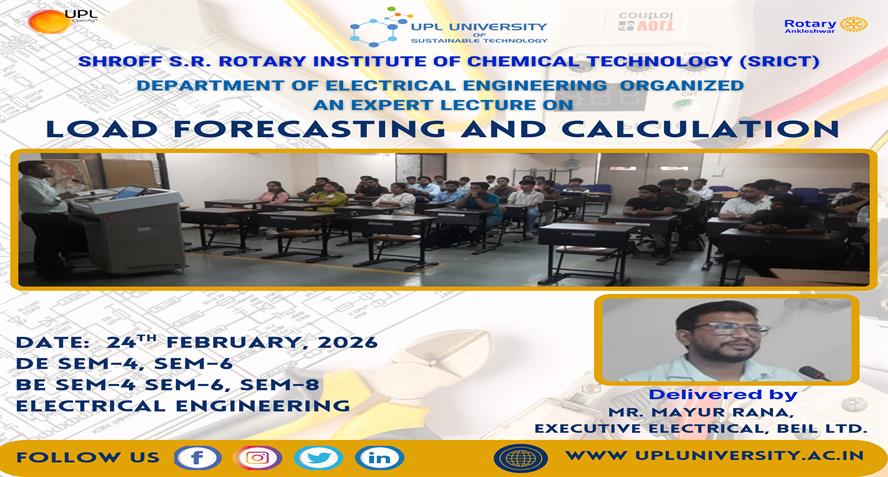 The Department of Electrical Engineering-SRICT of UPL University has organized an expert lecture on "Load Forecasting and Calculation" for students of electrical engineering on 24th February, 2026 in...