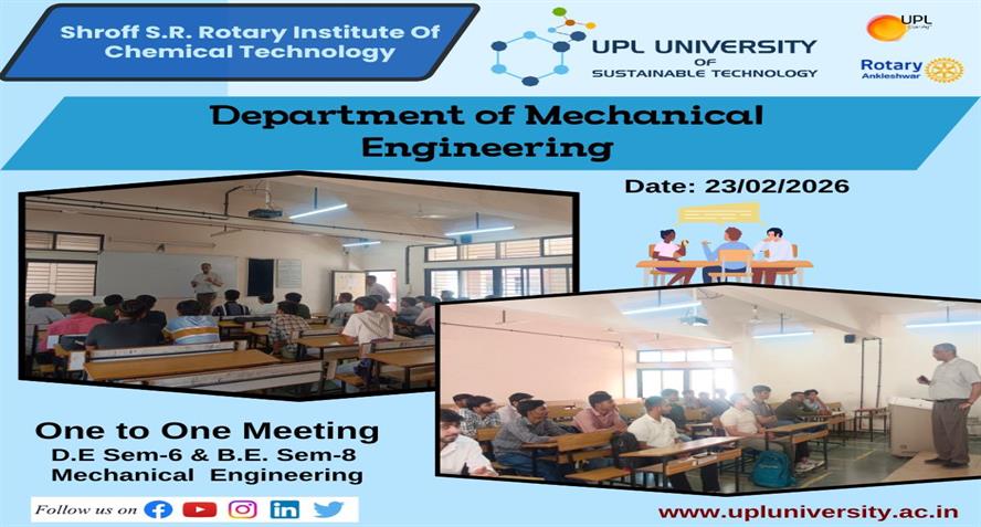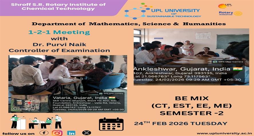 The Department of Mathematics ,Science and Humanities had organized a One-to-One meeting for BE MIX (CT, EST, EE & ME) students was successfully conducted on 24/02/2026 at UPL University of Sustainabl...