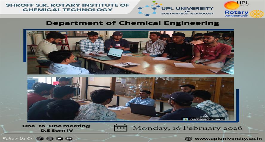 A One-to-One Meeting for Diploma Chemical Engineering Semester 4 students was held on 16th February 2026, in the presence of Dr Alok Gautam (Dean R&D, UPL University).