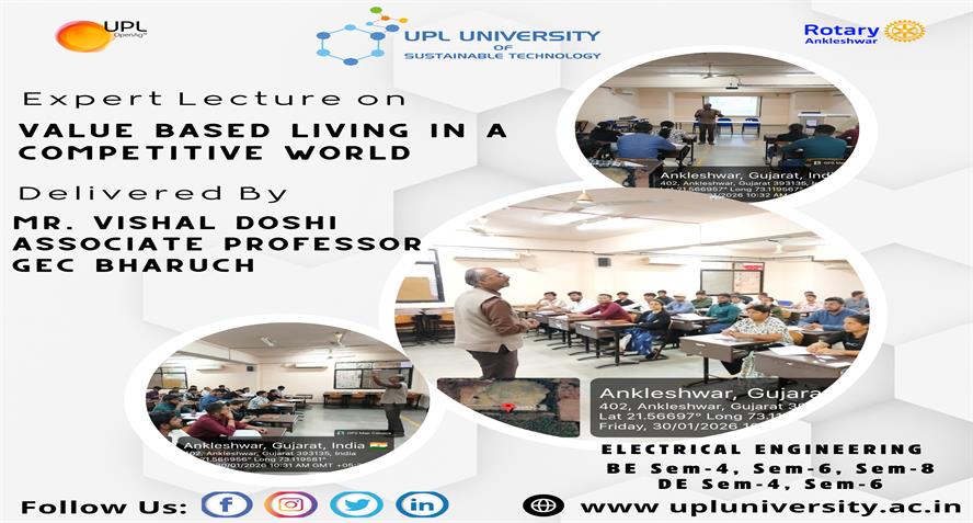 UPL University of Sustainable Technology has been established by Ankleshwar Rotary Education Society (ARES) to place Gujarat and India at one of the best education places of the World. The journey of UPL University of Sustainable Technology is started way back in 2011 with the establishment of Shroff S.R.Rotary Institute of Chemical Technology (SRICT) conducting UG (B.E.) courses in engineering in affiliation with GTU and approval of AICTE, New Delhi.